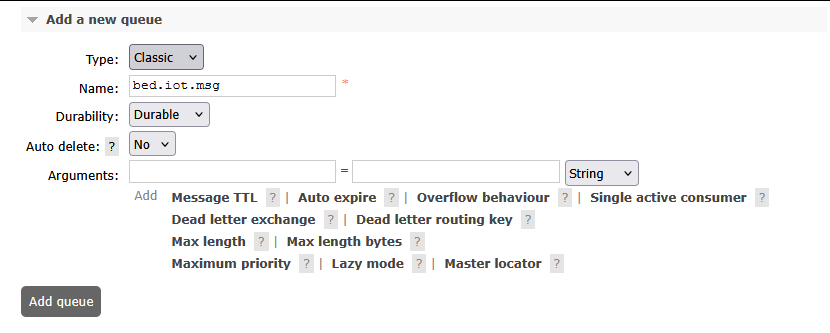 在 Queues-> Add a new queue