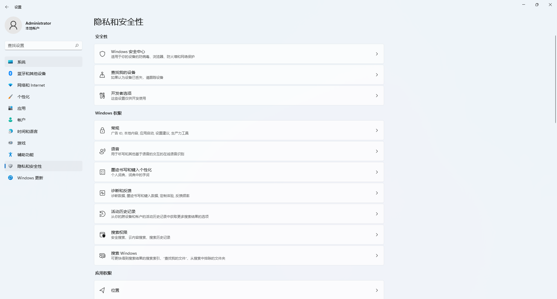 windows安全中心设置页